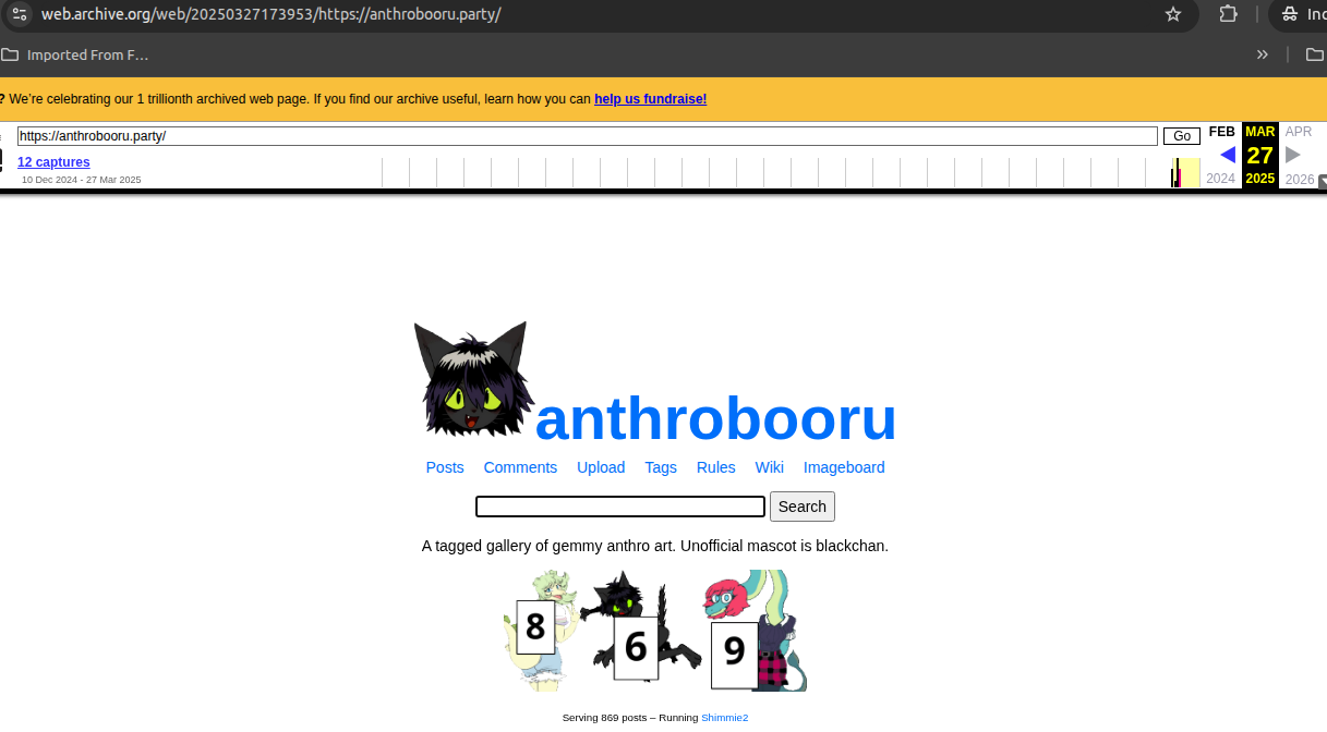 Pretty much, and these types of discussions are silly. Why should I care what other anons do or post? It's none of my business, however I can establish a few ground rules since this is my website. I don't want to guilt trip people or run a cult website, so you post what you like and if this website is not for you then please don't use it. Complaining or whining is not going to change my mind, and retarded internet turf aren't either. You gotta learn to move on because time is precious and being butthurt a furry website janny told you to fuck off a year ago is not worth it imo