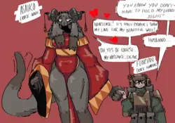 >The deer-woman carrying a fox is technically an Anthro Anhero too based off of Mikayla Reins from SaveAFox, but I omitted the “Anthro Anheroes” title out of respect, as I deeply respect her animal welfare efforts. I actually spent quite a while redrawing and reconceptualizing her face so it would look cute and not like a grotesque caricature.