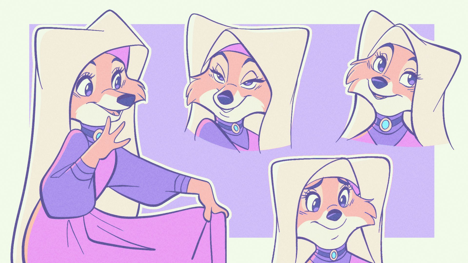As a more curious case, we never see Maid Marian without her head uncovered. Looking at the other characters' designs, it is reasonable to assume that the fur on her head is not any longer or thicker than elsewhere but since this is never explicitly shown, it is left up to the viewers' imagination.