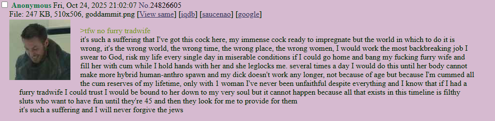 They seethe about guys who aren't trannies a lot which is bad